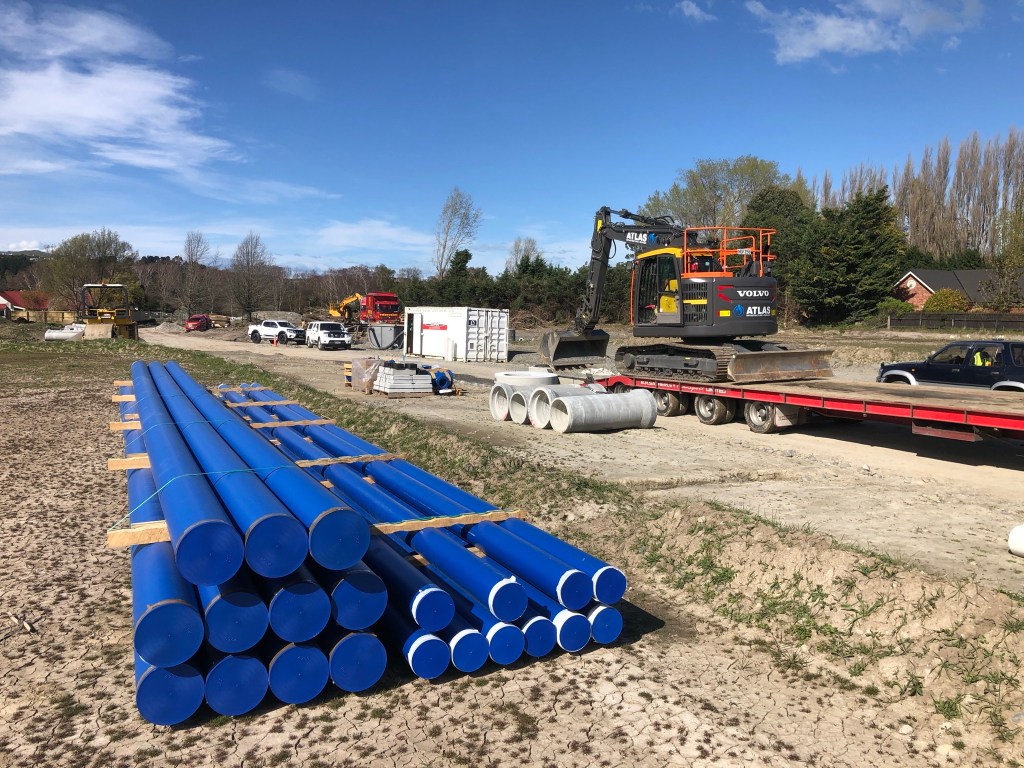 Riki and crew are starting on there next project completing the remaining concrete drainage (525 to 900 plus sumps and manholes), Water and Sewer Mains plus all riders mains and shared services. They will be using the recently acquired Atlas Volvo ECR145EL. In 2021 Volvo did a major upgrade with some awesome features.